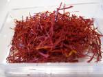 Crimson colored stigma of a flower with sweet, metallic, hay-like, and slightly bitter notes.