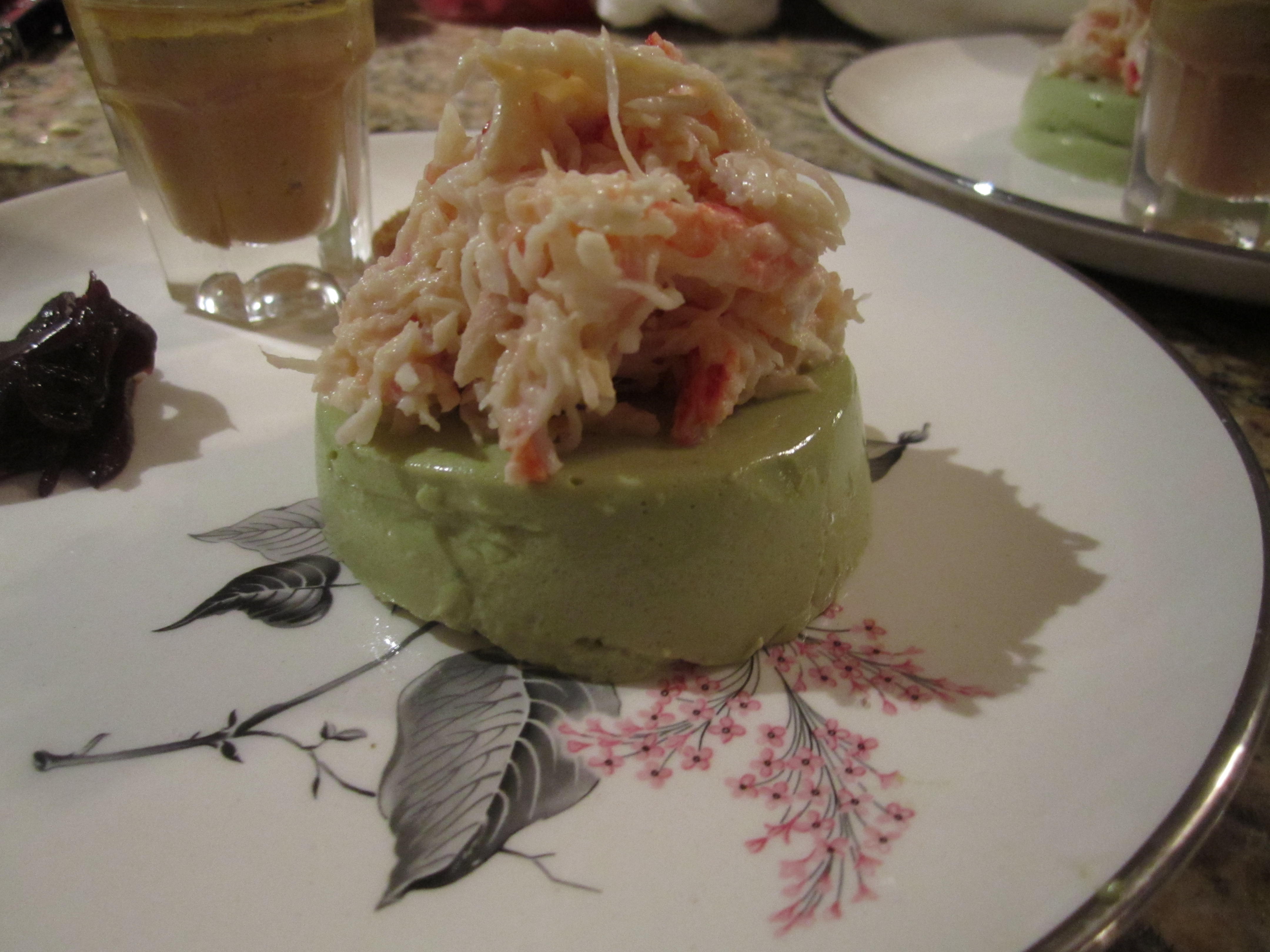 Place 1/4 cup of warm water in a small ramekin and sprinkle half a pack (about 2 tsp.) of unflavored gelatin. Let it soften for about 10 min. Meanwhile, place the avocados, evaporated milk and salt in a food processor or blender. Process until smooth. Add the juice, cilantro and mix well. Add 1/4 cup of hot water to the gelatin mixture and dissolve until liquid becomes clear. Once it has slightly cooled, add the gelatin to the avocado mixture and mix thoroughly.