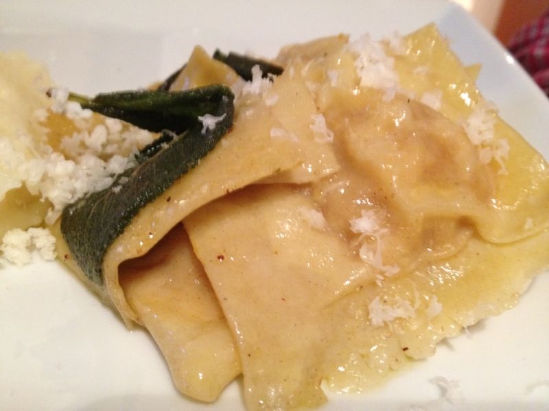 Since the roasted butternut purée was flavored with nutmeg, cinnamon, and small chucks of parmesan, I simply dressed my ravioli with sage butter.