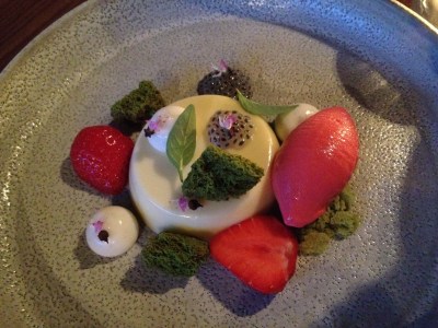 vanilla, matcha cake, chia seeds, strawberry sorbet, basil Posted by Kitchenani on June 25, 2014June 26, 2014
