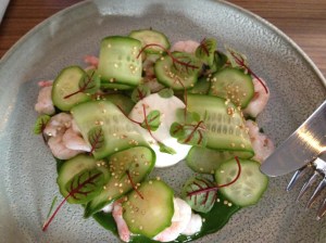 shrimp de matane, cucumber, yogurt, roasted quinoa Posted by Kitchenani on June 25, 2014June 25, 2014