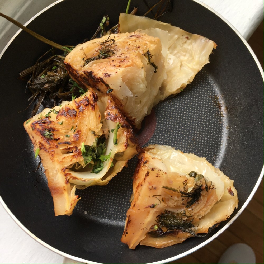 So Moos surprised me this week. On a whim of inspiration he decided to roast a cabbage and to my surprise it was much better than I expected! Using herbs and spices normally used for mahshi (Egyptian stuffed cabbage) he came up with this delicious recipe. The flavour blended so well together that I used the same idea for cauliflower the following day… Very original! 😒🤓