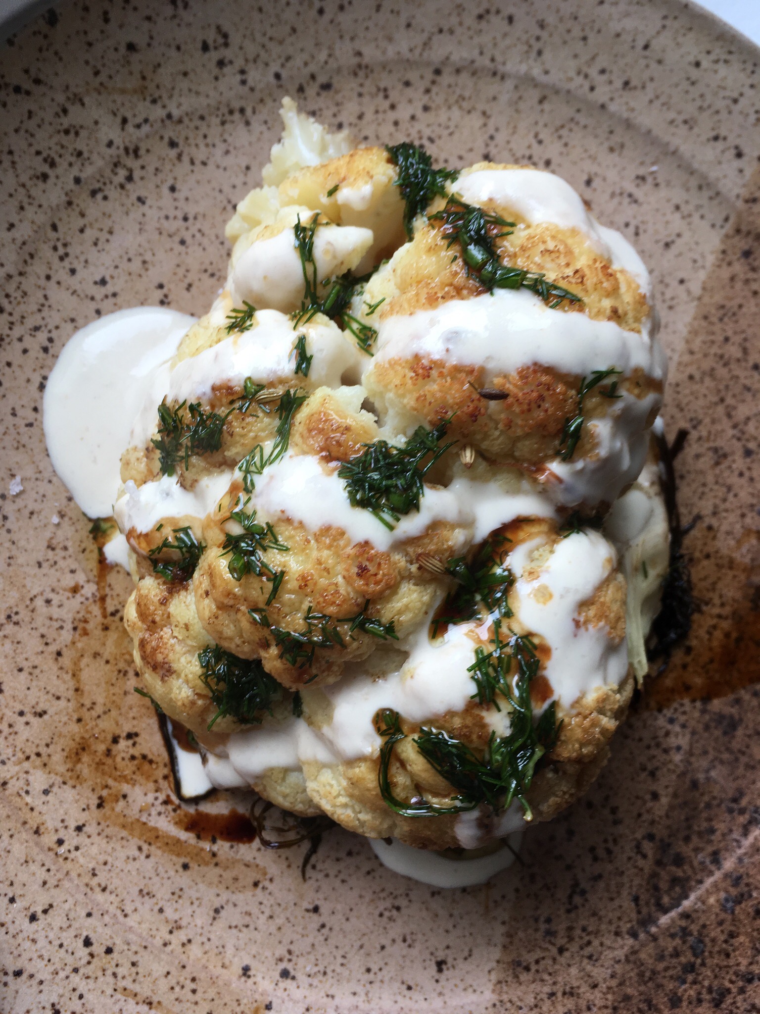 The next day I didn’t steam the cauliflower, I simply roasted it over a bed of dill with the same mixture of spices and added some fennel seeds.